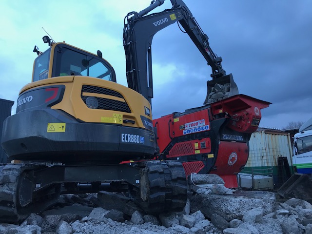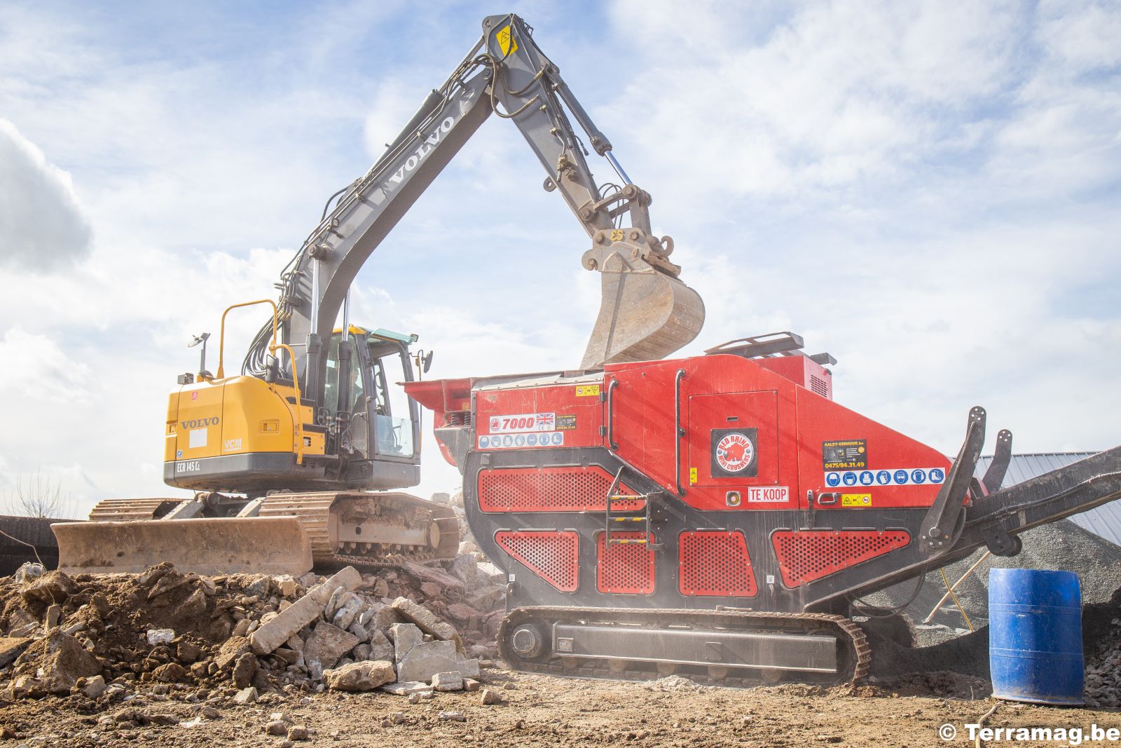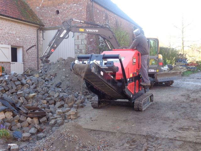 Plaats deze minibreker achter een zeef zodat je in 1 beweging grond en steenpuin zeeft. De stenen verwerk je meteen tot herbruikbaar granulaat.