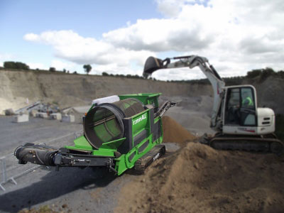Met de trommelzeef met hoge zeefcapaciteit zeef je makkelijk 100 kubieke meter grond of afval per uur.